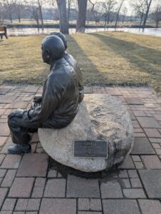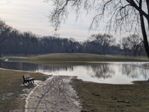 The tridge was there, as promised, and I walked to all three ends. The park itself… kinda flooded and containing some sculptures with very unexciting names.